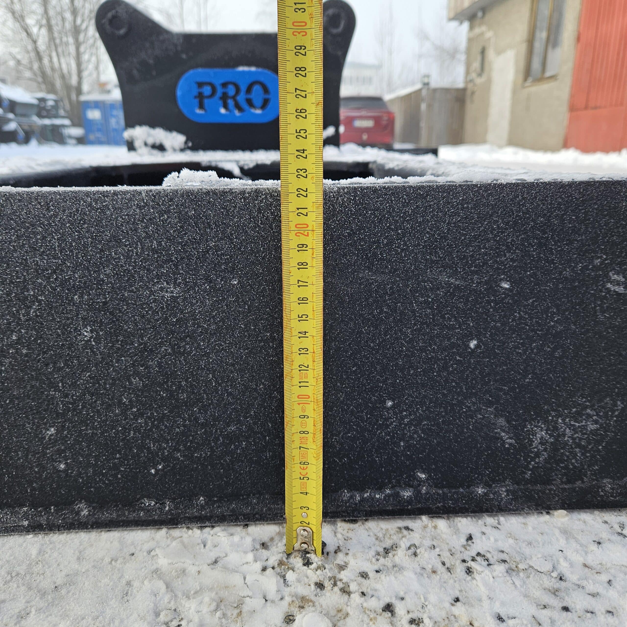 40 cm pitkä takalevy toimii myös “kauhana” mullan tai murskeen levityksessä.